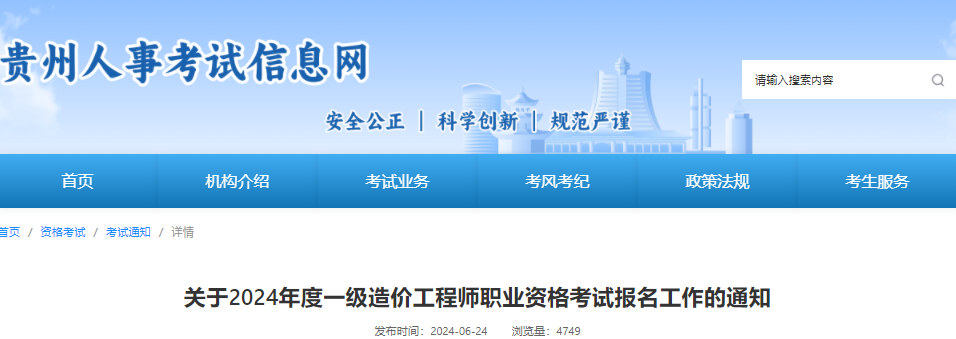 從貴州人事考試信息網(wǎng)獲悉,2024年貴州一級造價工程師報(bào)考工作現(xiàn)已開始,報(bào)名時間:6月28日-7月8日,考試時間:10月19日-20日,更多事宜請參考閱讀《考務(wù)通知》,官方公告原文如下: