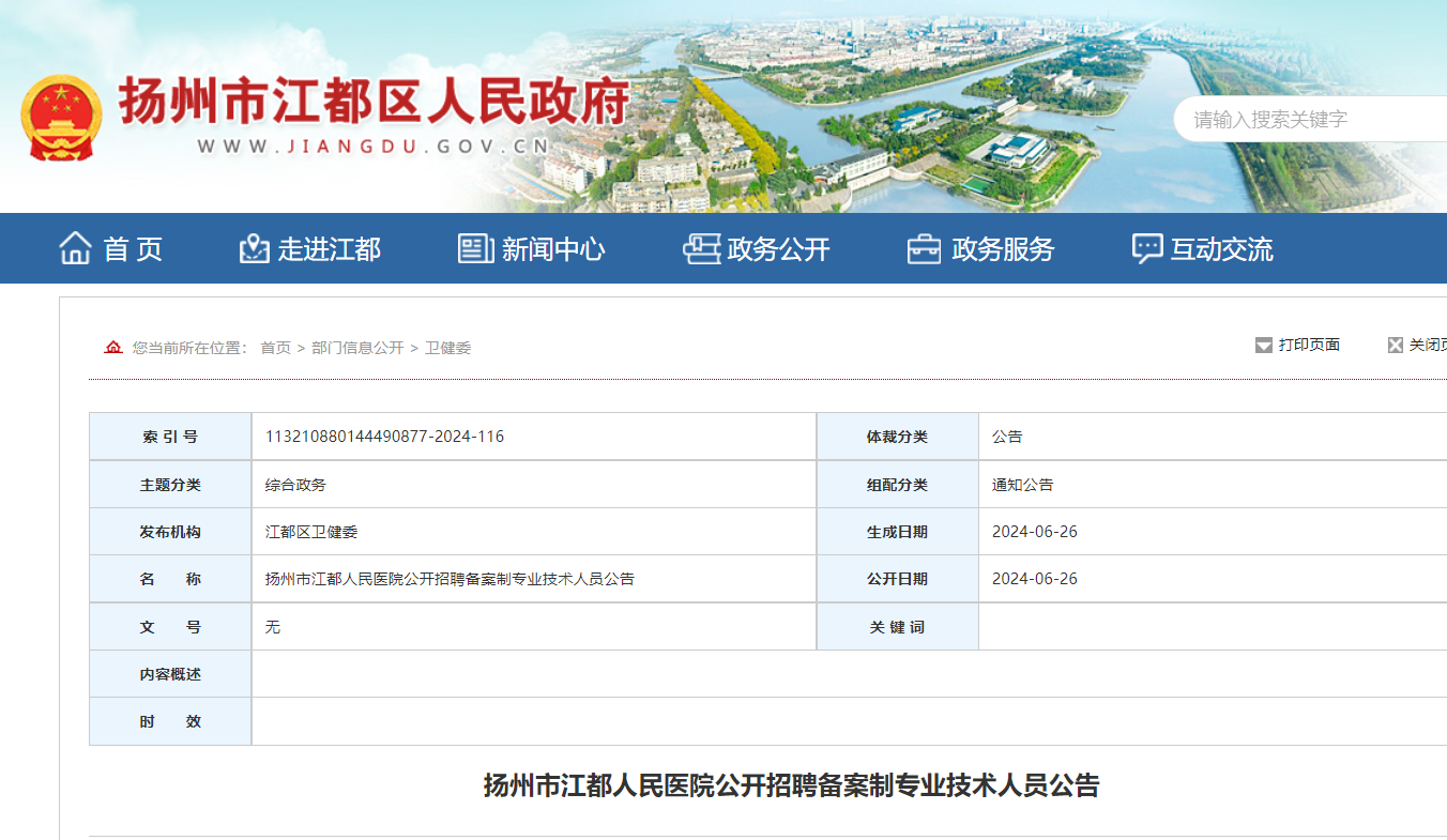 2024江蘇揚(yáng)州市江都人民醫(yī)院公開招聘?jìng)浒钢茖I(yè)技術(shù)人員公告已發(fā)布,報(bào)名時(shí)間:2024年6月28日-7月4日?,F(xiàn)將招聘公告原文發(fā)布如下: