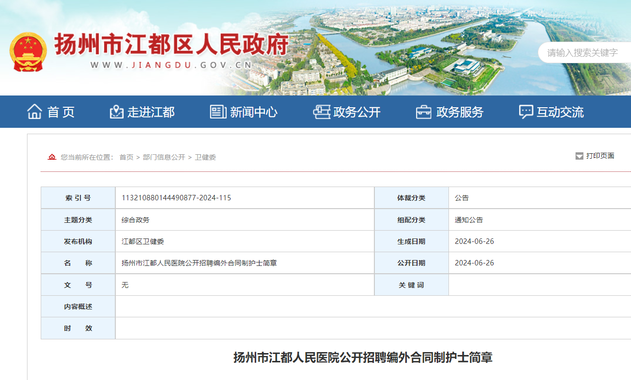2024江蘇揚(yáng)州市江都人民醫(yī)院招聘編外合同制護(hù)士簡章已發(fā)布 ,報(bào)名時(shí)間:2024年6月28日-7月4日。現(xiàn)將招聘公告原文發(fā)布如下: