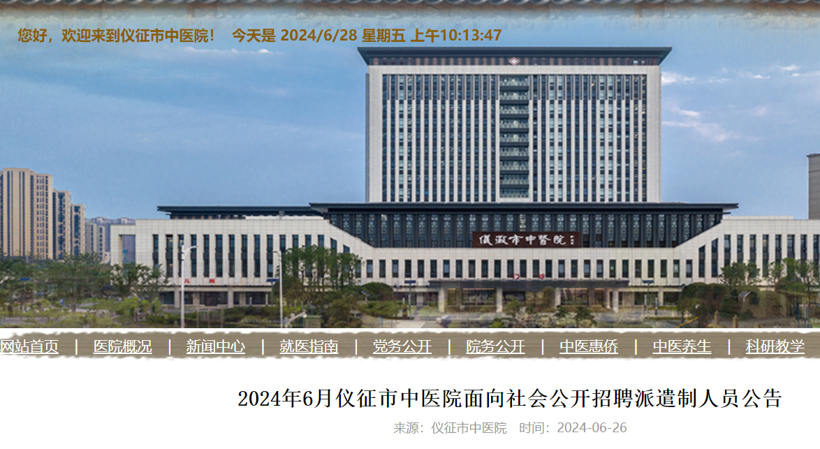 2024年6月江蘇揚州市儀征市中醫(yī)院招聘派遣制人員公告已發(fā)布,報名時間:2024年6月26日—7月2日,現(xiàn)將招聘公告原文發(fā)布如下: