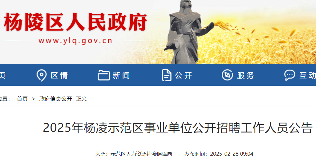 本次招聘在楊凌示范區(qū)管委會(huì)網(wǎng)(https://www.yangling.gov.cn)、楊凌示范區(qū)人力資源和社會(huì)保障局網(wǎng)(https://rsj.yangling.gov.cn)、楊凌人事人才網(wǎng)(https://www.ylrsrc.net)、“秦云就業(yè)”微信小程序發(fā)布公告。