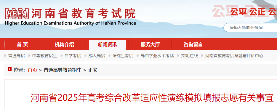 河南省2025年高考綜合改革適應(yīng)性演練模擬填報志愿工作將于3月5日開始,現(xiàn)將有關(guān)事宜告知如下:
