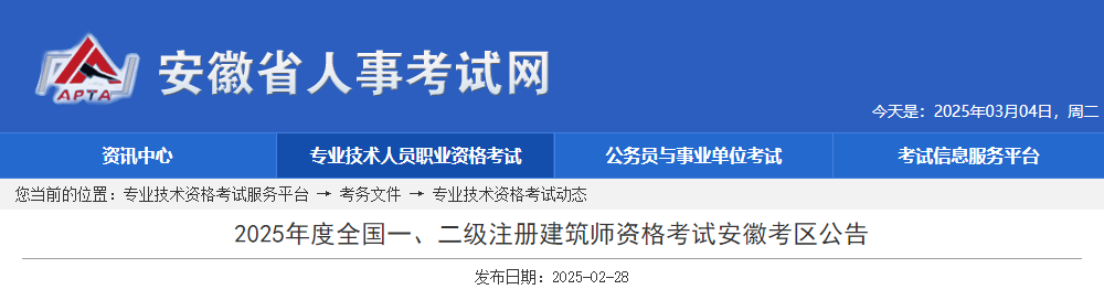 從安徽省人事考試網獲悉,根據《2025年安徽全國一、二級注冊建筑師資格考試考務工作通知》中得知,2025年安徽注冊建筑師繳費時間:,未在規(guī)定時間內繳費的報考者,視為自動放棄考試。詳情如下:
