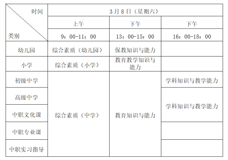 1.我省小學(xué)類別面試增設(shè)“心理健康教育”“信息技術(shù)”學(xué)科,中學(xué)類別初中、高中面試增設(shè)“心理健康教育”“日語”“俄語”學(xué)科,以上學(xué)科筆試科目一、科目二與已開考學(xué)科一致,中學(xué)類別科目三《學(xué)科知識(shí)與教學(xué)能力》結(jié)合面試一并考核。