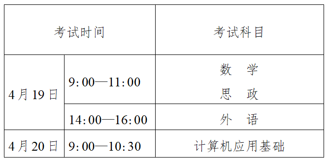 1.文化基礎(chǔ)課(公共課)考試時間:
