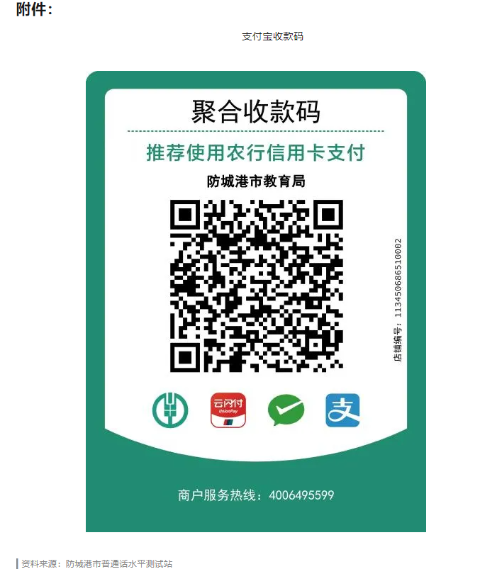 (1)繳費(fèi)方式一:網(wǎng)銀轉(zhuǎn)賬(收款戶名:防城港市教育局;收款銀行開戶行:農(nóng)行防城港港城支行;收款賬號(hào):20775901040008072)——輸入金額——填寫備注信息(普測(cè)+姓名)——確認(rèn)繳款信息點(diǎn)擊“確認(rèn)繳費(fèi)”——完成繳費(fèi)(注:轉(zhuǎn)賬前認(rèn)真核對(duì)收款賬號(hào)、收款戶名、收款銀行開戶行、金額等信息,切勿轉(zhuǎn)賬錯(cuò)誤;務(wù)必要備注信息)