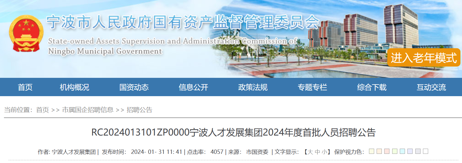 2024年度浙江寧波人才發(fā)展集團(tuán)首批人員招聘公告已發(fā)布,報(bào)名時(shí)間:2024年2月8日-2024年2月23日。現(xiàn)將招聘公告原文發(fā)布如下: