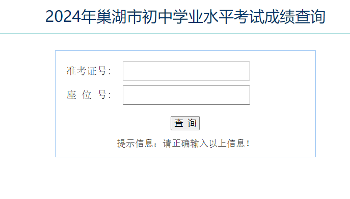 點(diǎn)擊進(jìn)入>>>2024年安徽巢湖中考成績查詢?nèi)肟?BR>