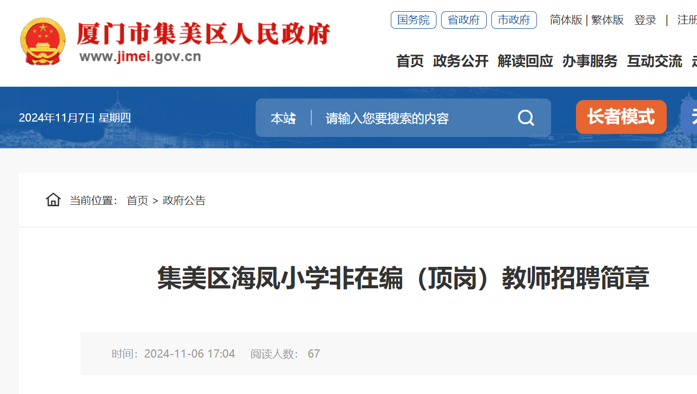 2024年福建廈門市集美區(qū)海鳳小學(xué)非在編(頂崗)教師招聘簡章已發(fā)布,報名時間:即日起至2024年11月13日?,F(xiàn)將招聘公告原文發(fā)布如下: