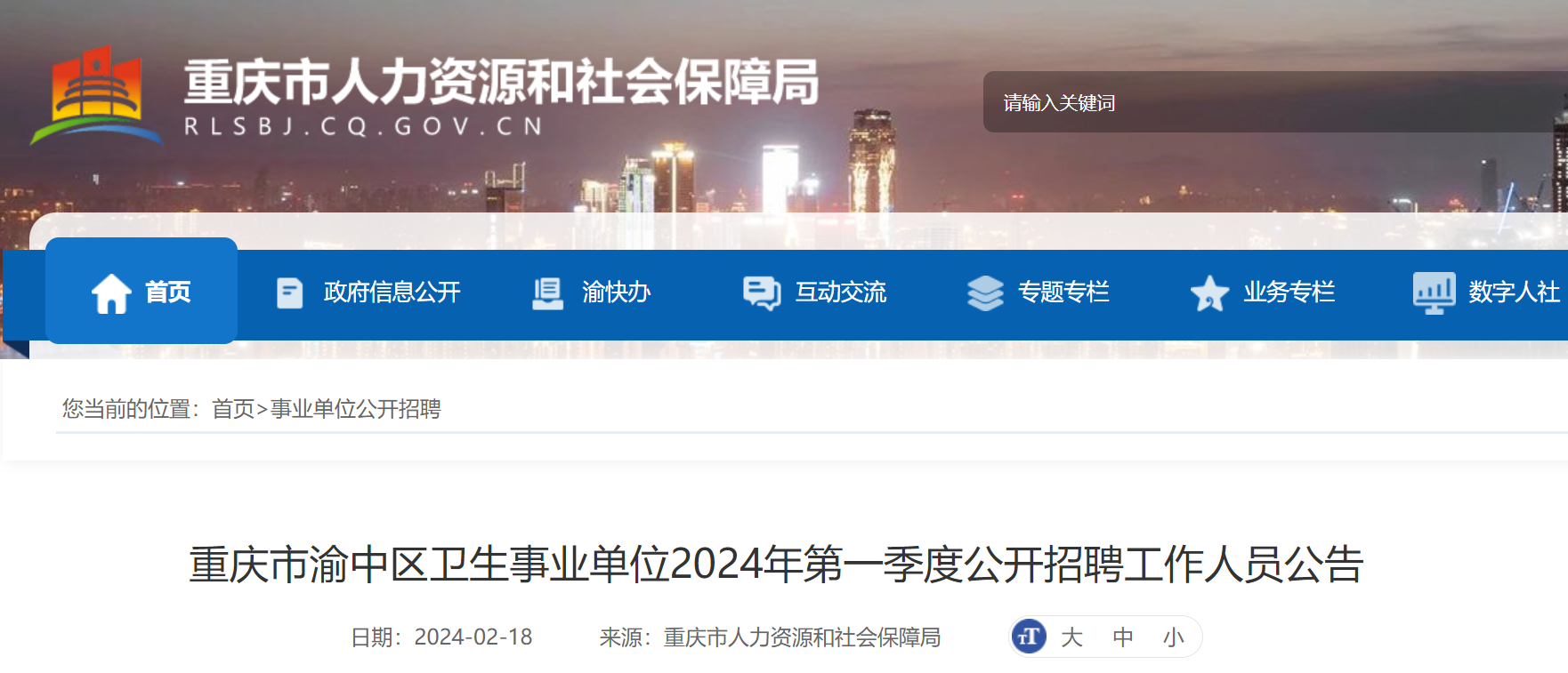 2024年第一季度重慶市渝中區(qū)衛(wèi)生事業(yè)單位公開招聘工作人員公告已發(fā)布,報(bào)名時(shí)間:2024年2月25日9:00至2月29日9:00?,F(xiàn)將招聘公告原文發(fā)布如下: