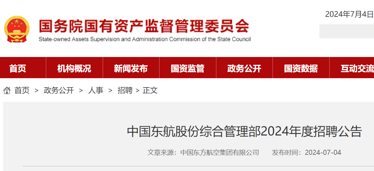 2024年度中國東航股份綜合管理部招聘公告已發(fā)布,報(bào)名時(shí)間:2024年7月31日17:00截止?,F(xiàn)將招聘公告原文發(fā)布如下: