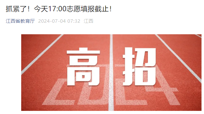 江西省2024年普通高校招生提前本科非軍事類高校及其他各批次志愿填報(bào)將于今天17:00結(jié)束,還沒有完成志愿填報(bào)的考生要抓緊了!