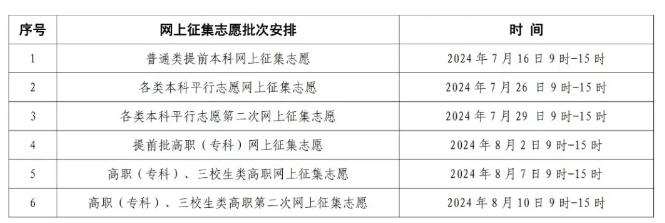 2.缺額征集志愿填報(bào),每批次原填志愿錄取結(jié)束后,均安排缺額志愿填報(bào),具體填報(bào)時(shí)間參照下表。
