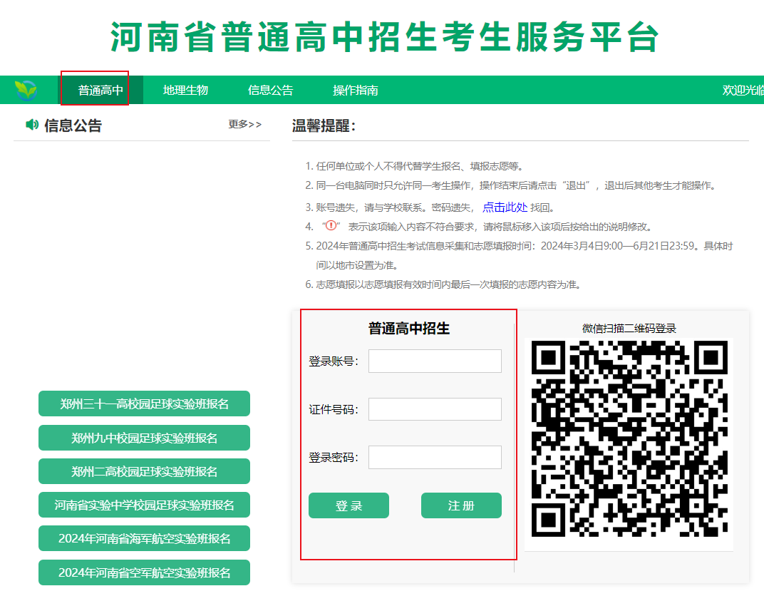 九年級(jí)考生點(diǎn)擊菜單欄“普通高中”,輸入考生信息登錄查詢。