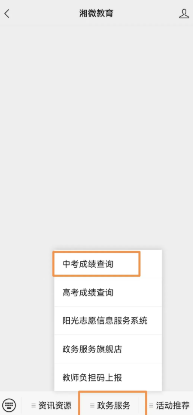 1.微信關注湖南省教育廳微信公眾號(湘微教育),通過“政務服務-中考成績查詢”專區(qū)查詢;