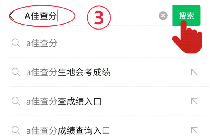 第一步:搜索并關注“A佳查分”微信公眾號。