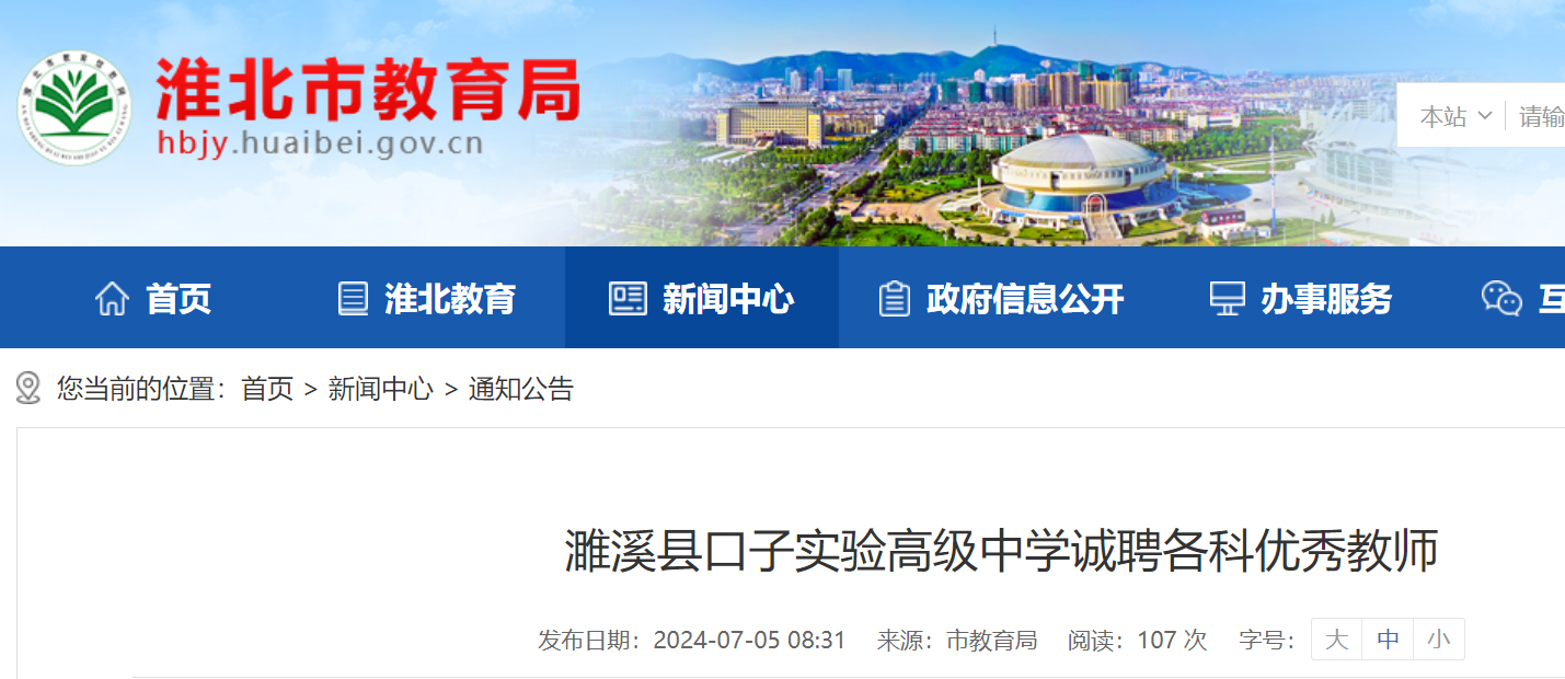 2024年安徽淮北濉溪縣口子實驗高級中學(xué)誠聘各科優(yōu)秀教師80人,現(xiàn)將招聘公告原文發(fā)布如下: