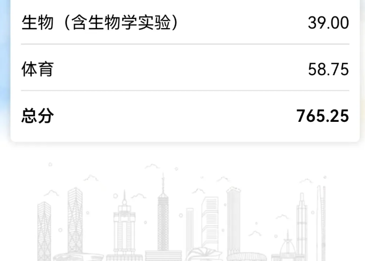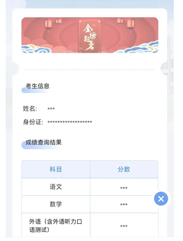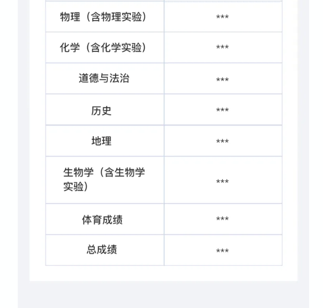信息驗證通過后,系統(tǒng)將呈現(xiàn)該考生的中考成績信息。