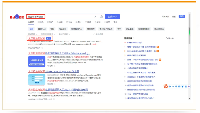 方法一:可以通過百度(www.baidu.com)輸入“大連招生考試網(wǎng)”進行搜索。