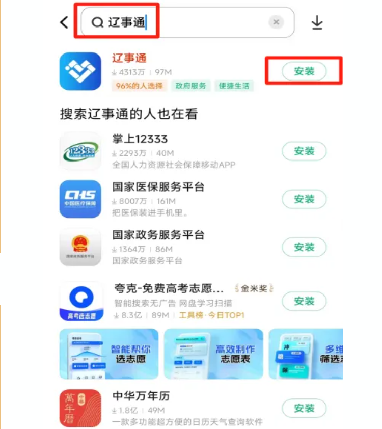 根據(jù)手機的型號在對應(yīng)的手機市場搜索下載【遼事通】APP。