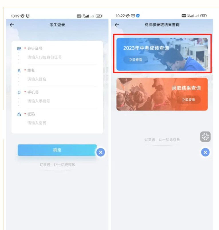 在中考成績查詢功能開放后,進入中考成績查詢頁面,輸入考生預(yù)留大連招生考試網(wǎng)的信息,輸入手機號、姓名、身份證號、大連招生考試網(wǎng)登錄密碼及驗證碼進行登錄。