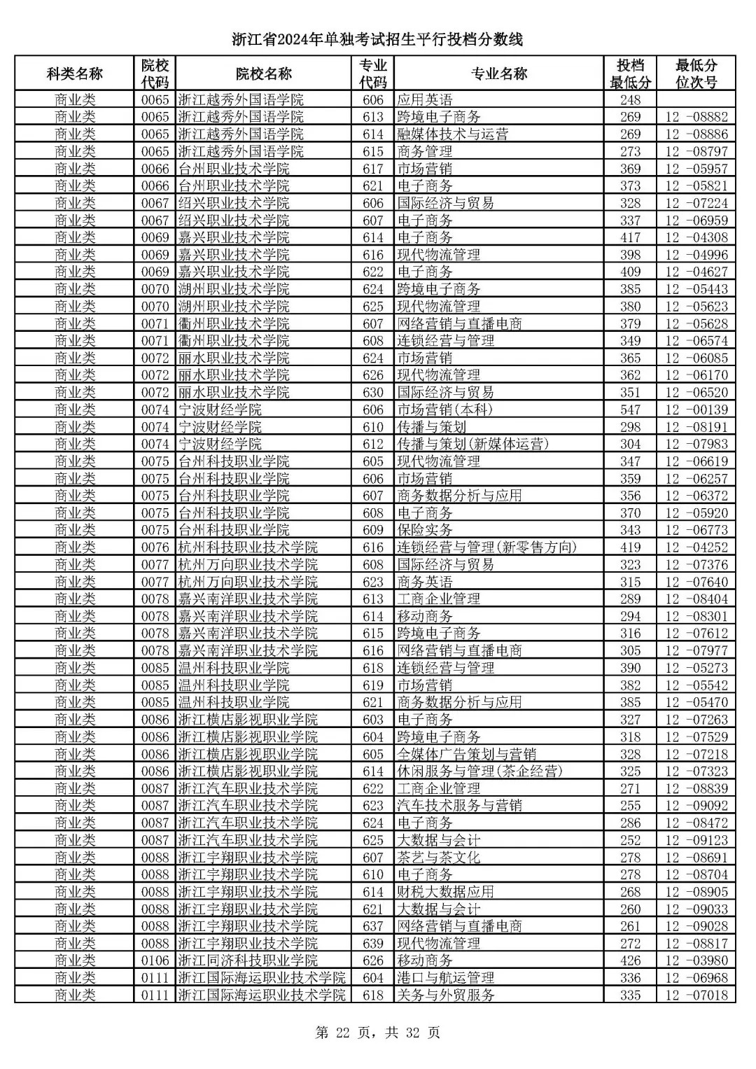 浙江省2024年單獨(dú)考試招生平行投檔分?jǐn)?shù)線