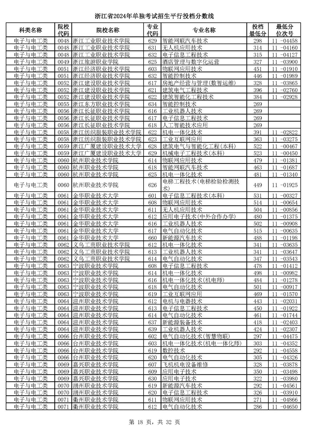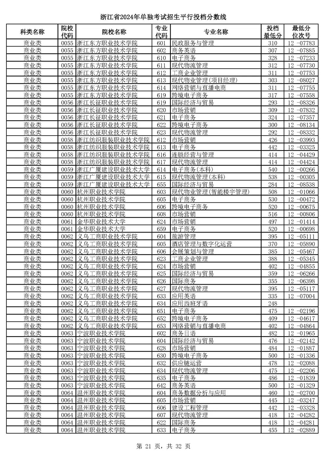 從浙江發(fā)布了解到,浙江2024年單獨(dú)考試招生平行投檔分?jǐn)?shù)線已公布,具體如下: