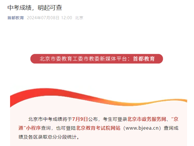 從北京市教育委員會(huì)獲悉,2024年北京中考成績(jī)查詢(xún)時(shí)間、查分渠道及入口已公布,7月9日起,具體詳情如下: