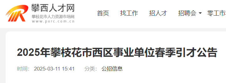 小編根據(jù)攀枝花市西區(qū)人力資源和社會保障局發(fā)布“2025年攀枝花市西區(qū)事業(yè)單位春季引才公告”得知,2025年攀枝花市西區(qū)事業(yè)單位春季引才4人,報名時間為3月13日至4月7日。