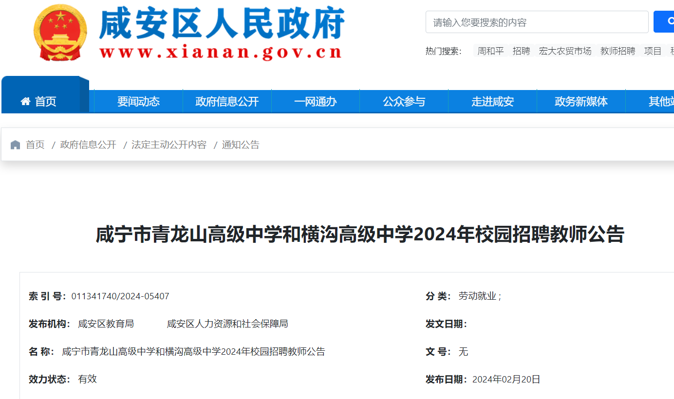 2024年湖北咸寧市青龍山高級(jí)中學(xué)和橫溝高級(jí)中學(xué)校園招聘教師公告已發(fā)布,報(bào)名時(shí)間:2024年2月22日9:00至2月28日17:00,現(xiàn)將招聘公告原文發(fā)布如下: