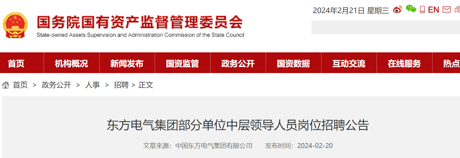 2024東方電氣集團(tuán)部分單位中層領(lǐng)導(dǎo)人員崗位招聘公告已發(fā)布,報(bào)名時(shí)間:2024年2月8日-29日17:00(以在線報(bào)名時(shí)間為準(zhǔn),逾期不予受理)。現(xiàn)將招聘公告原文發(fā)布如下: