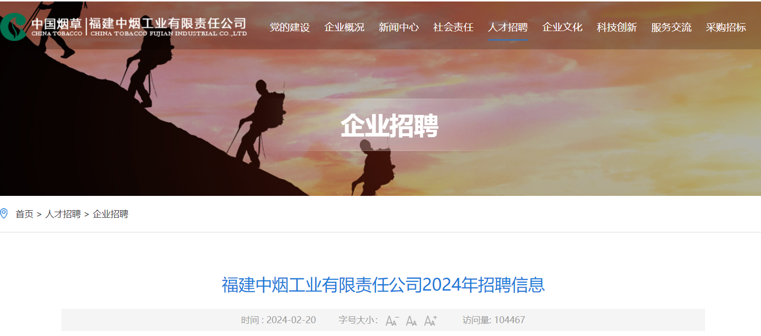 應(yīng)聘者請(qǐng)登陸福建中煙(網(wǎng)址:www.fjtic.com.cn)人才招聘模塊,關(guān)注招聘動(dòng)態(tài)。