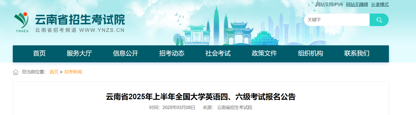 點(diǎn)擊進(jìn)入>>>2025上半年云南英語(yǔ)六級(jí)報(bào)名入口