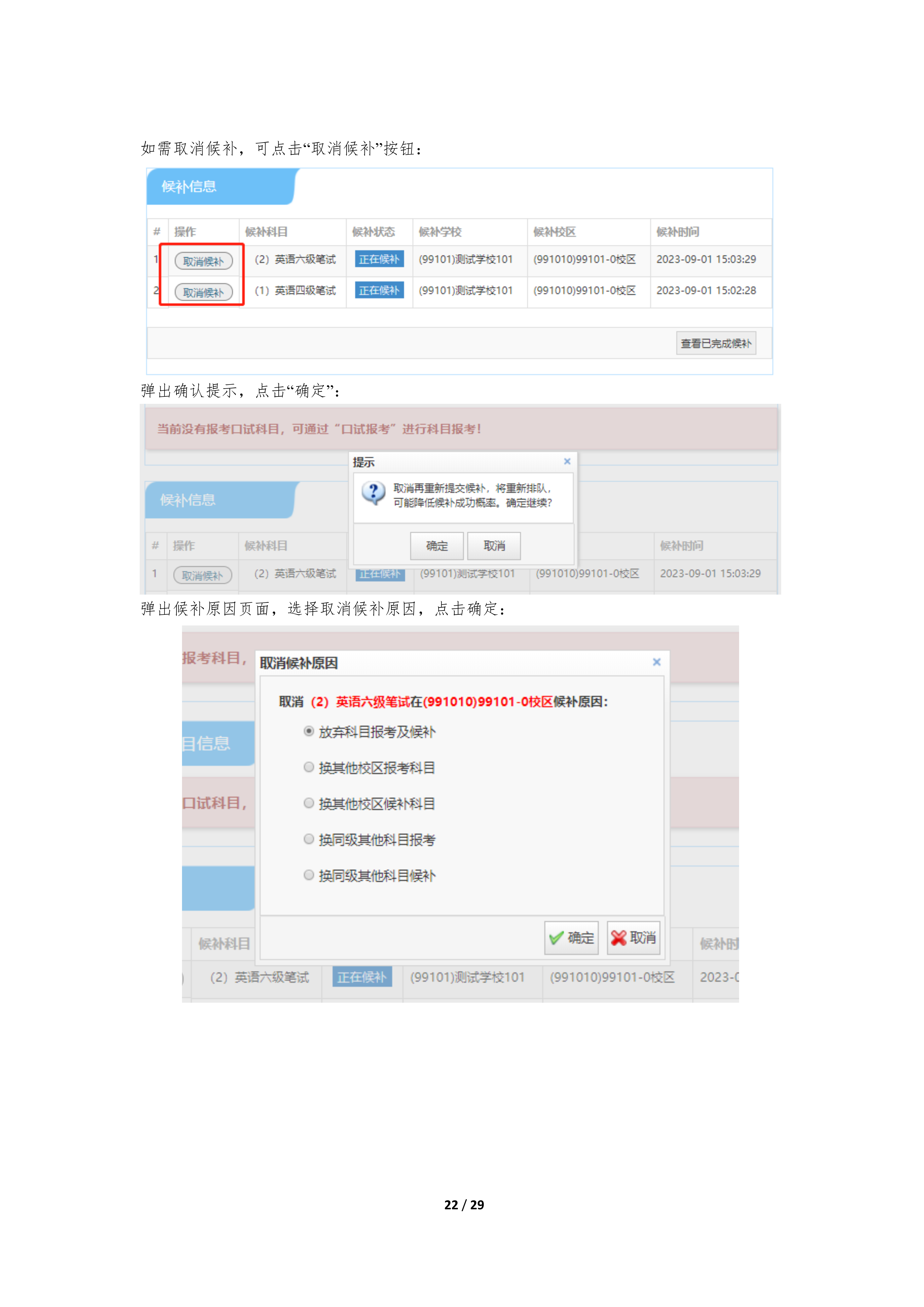 (二)口試。報(bào)考CET-SET應(yīng)先完成對(duì)應(yīng)級(jí)別筆試科目的報(bào)考,即完成本次CET4筆試報(bào)名后方可報(bào)考CET-SET4,完成本次CET6筆試報(bào)名后方可報(bào)考CET-SET6??谡Z(yǔ)考生應(yīng)在筆試考點(diǎn)報(bào)考,原則上不得跨校報(bào)考。