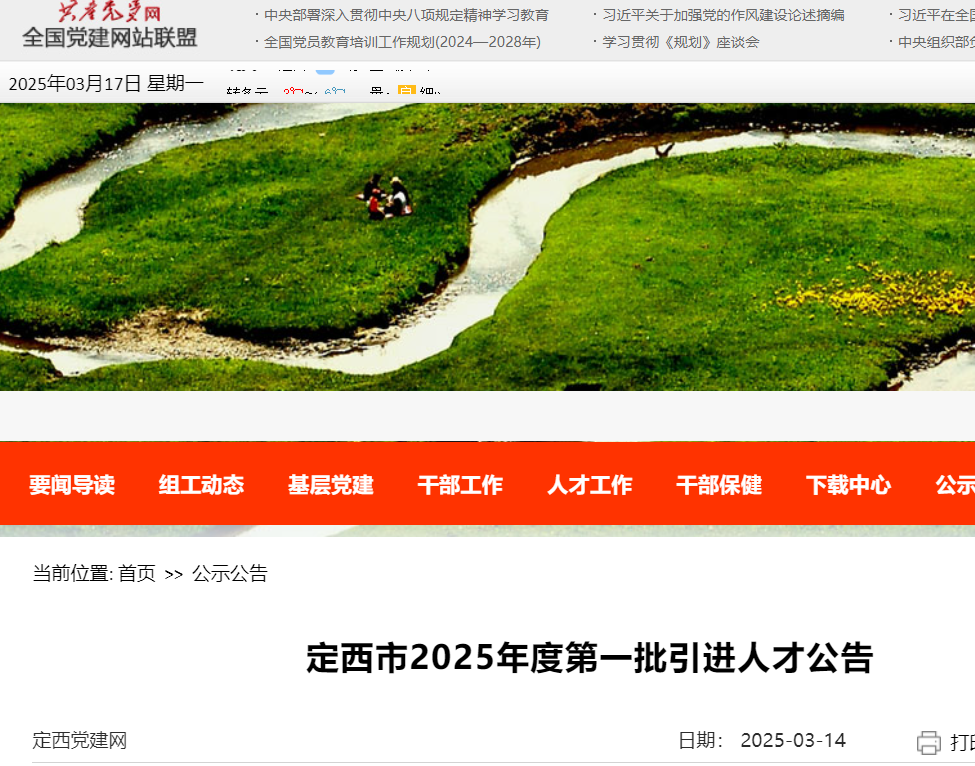 小編根據(jù)中共定西市委組織部發(fā)布”定西市2025年度第一批引進(jìn)人才公告“得知,2025年甘肅省定西市第一批引進(jìn)人才407人,報(bào)名時(shí)間為3月17日至4月1日。