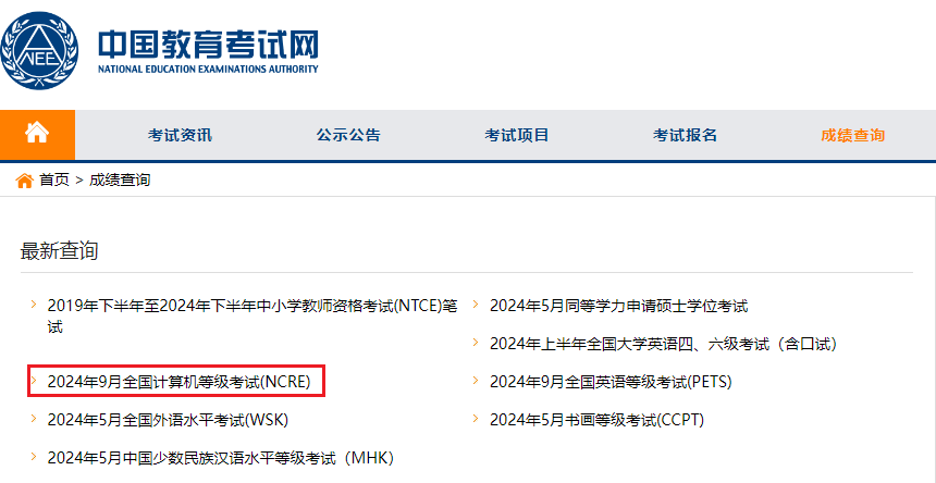 2024年9月全國計算機(jī)等級考試(NCRE)成績、證書查詢已開通,考生即日起可登錄中國教育考試網(wǎng)(www.neea.edu.cn)進(jìn)行查詢,獲證考生可下載電子證書。