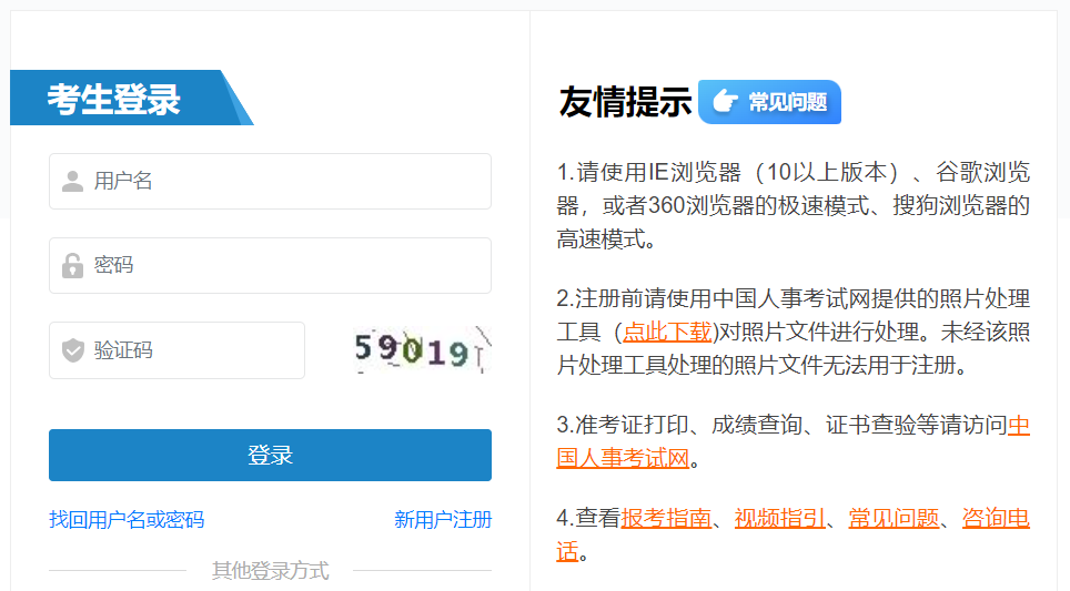 輸入用戶名、密碼、驗(yàn)證碼即可登錄中國(guó)人事考試網(wǎng)。