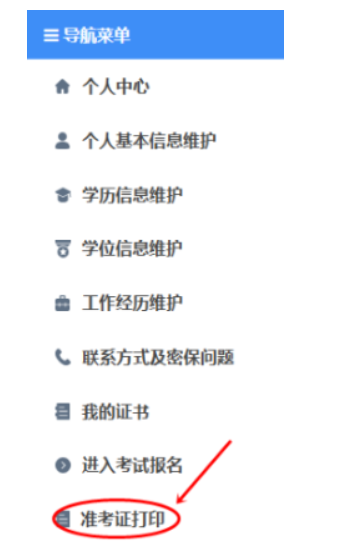 3、點(diǎn)擊左側(cè)導(dǎo)航“準(zhǔn)考證打印”;