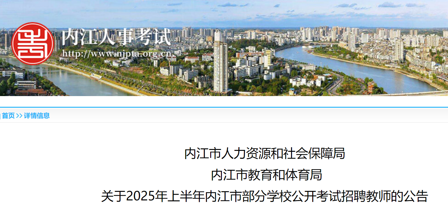 因工作需要,2025年上半年內(nèi)江市部分學(xué)校將面向社會公開考試招聘教師,現(xiàn)將公開考試招聘有關(guān)事項公告如下。