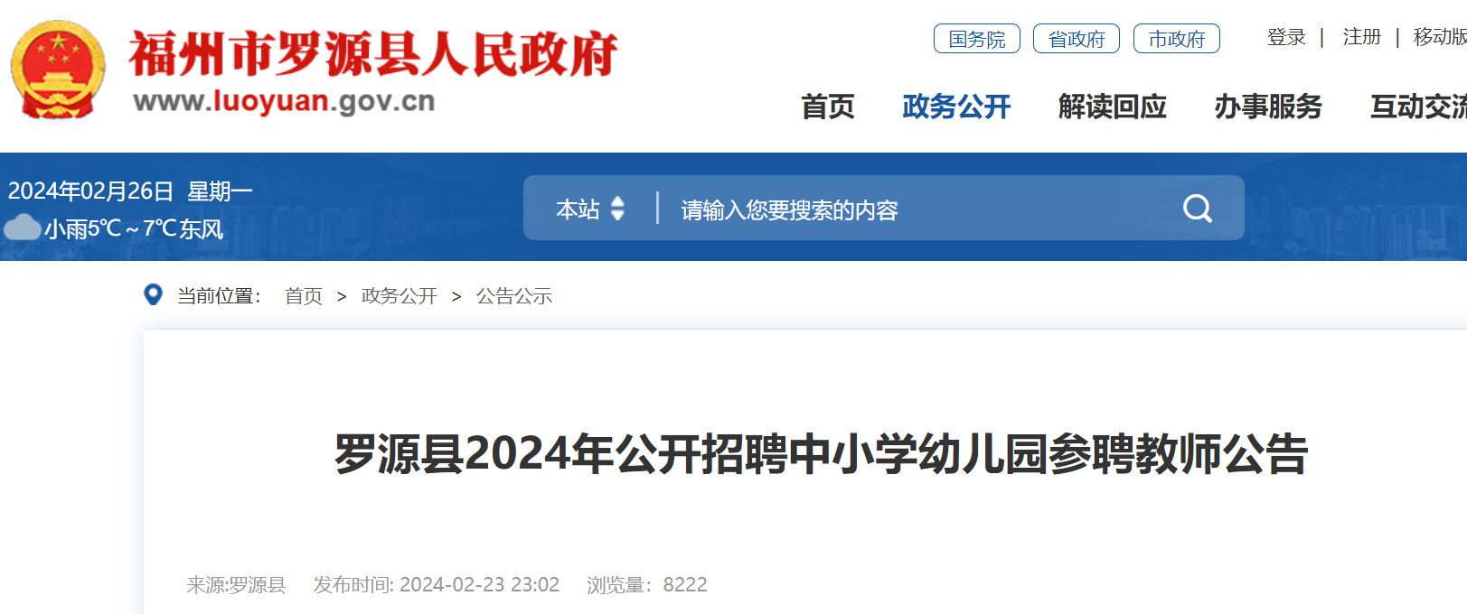 2024年福建福州羅源縣公開招聘中小學(xué)幼兒園參聘教師公告已發(fā)布,報名時間:3月8日8:00至3月14日17:30。現(xiàn)將招聘公告原文發(fā)布如下: