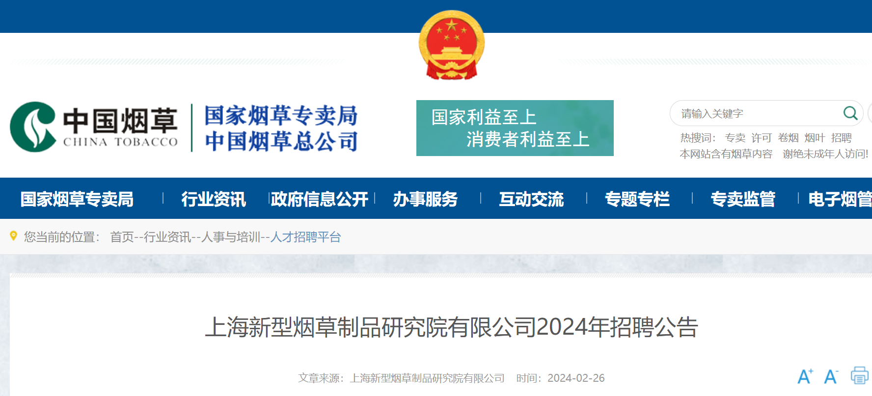 2024年上海新型煙草制品研究院有限公司招聘公告已發(fā)布,網(wǎng)上報(bào)名時(shí)間截止至2024年3月10日,逾期不再接受報(bào)名?,F(xiàn)將招聘公告原文發(fā)布如下:
