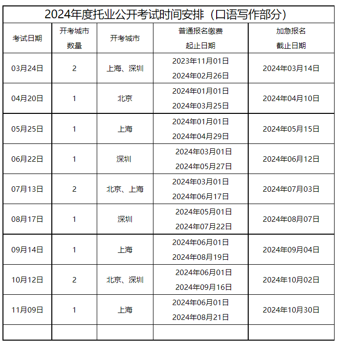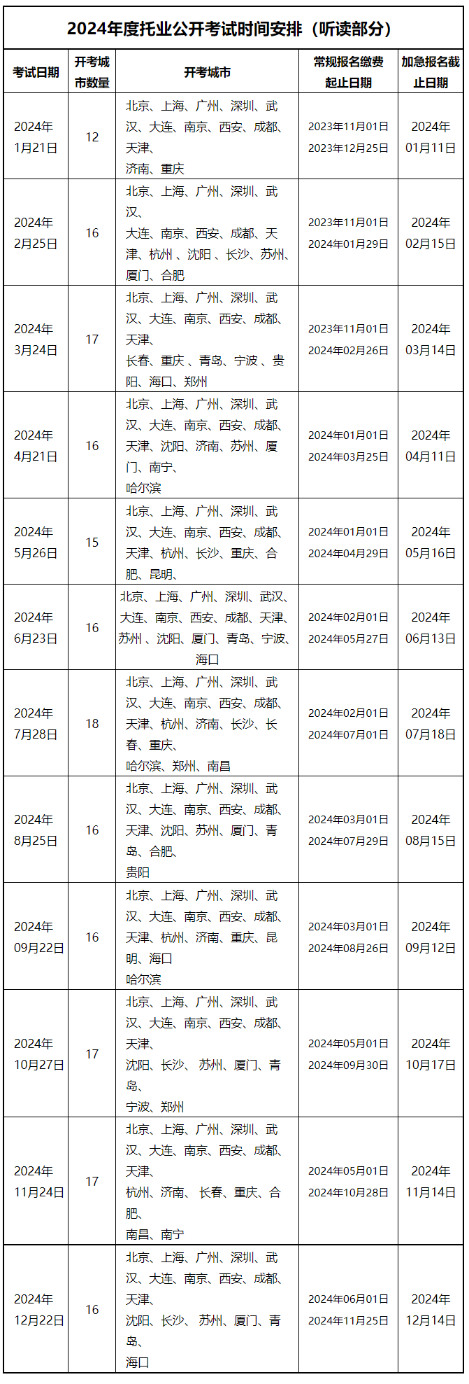 從ETS托業(yè)網(wǎng)獲悉,2024年遼寧托業(yè)考試時(shí)間及考點(diǎn)安排已公布,具體詳情如下: