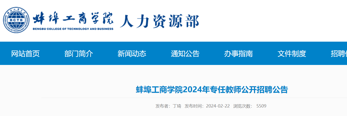 2024年安徽蚌埠工商學(xué)院專任教師公開招聘公告已發(fā)布,報名時間:2024年2月22日-2024年3月29日。現(xiàn)將招聘公告原文發(fā)布如下: