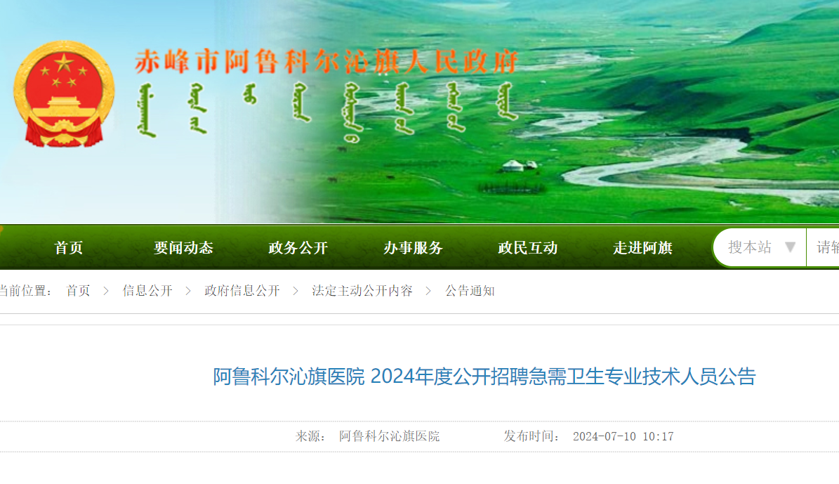 阿魯科爾沁旗醫(yī)院2024年度公開招聘急需衛(wèi)生專業(yè)技術(shù)人員公告在阿魯科爾沁旗綠源網(wǎng)發(fā)布。