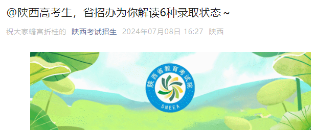 從陜西考試招生官微了解到,2024年陜西高考錄取狀態(tài)查詢的6種方式已公布,具體如下: