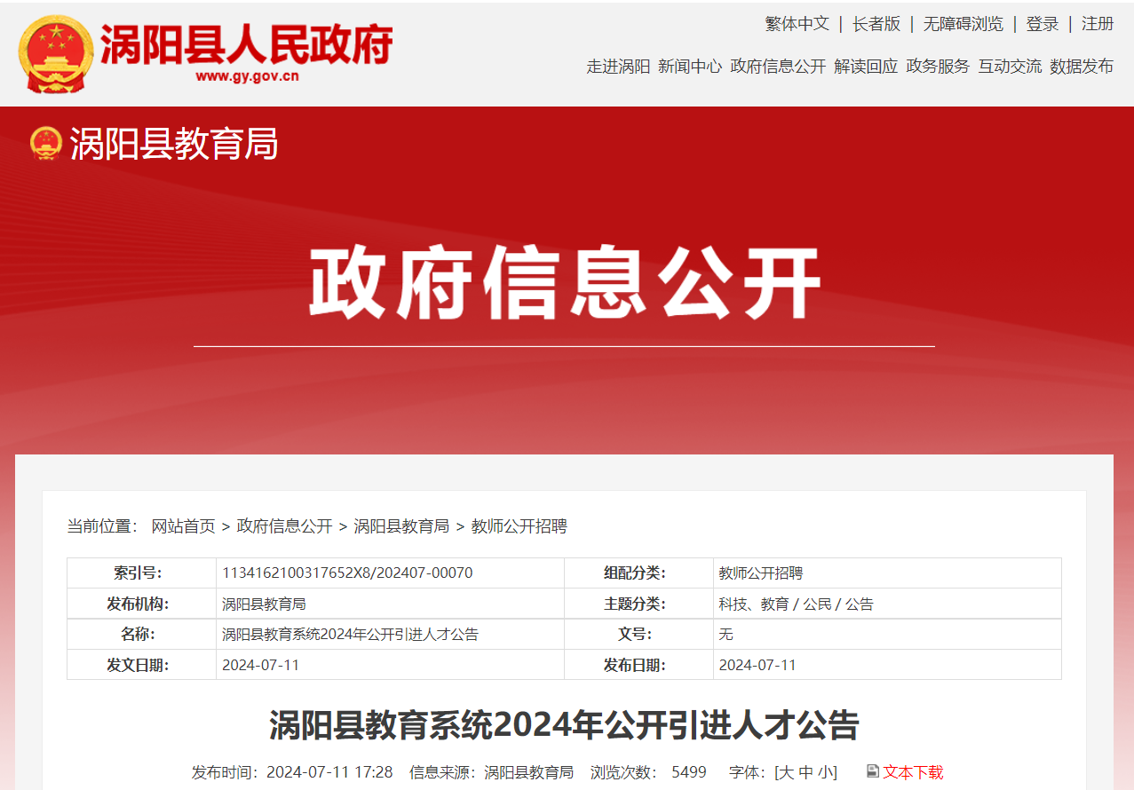 引進公告及招聘崗位計劃等相關(guān)信息在渦陽縣人民政府政務(wù)公開網(wǎng)(https://www.gy.gov.cn/XxgkContent/showList/779/98766/page_1.html)發(fā)布。