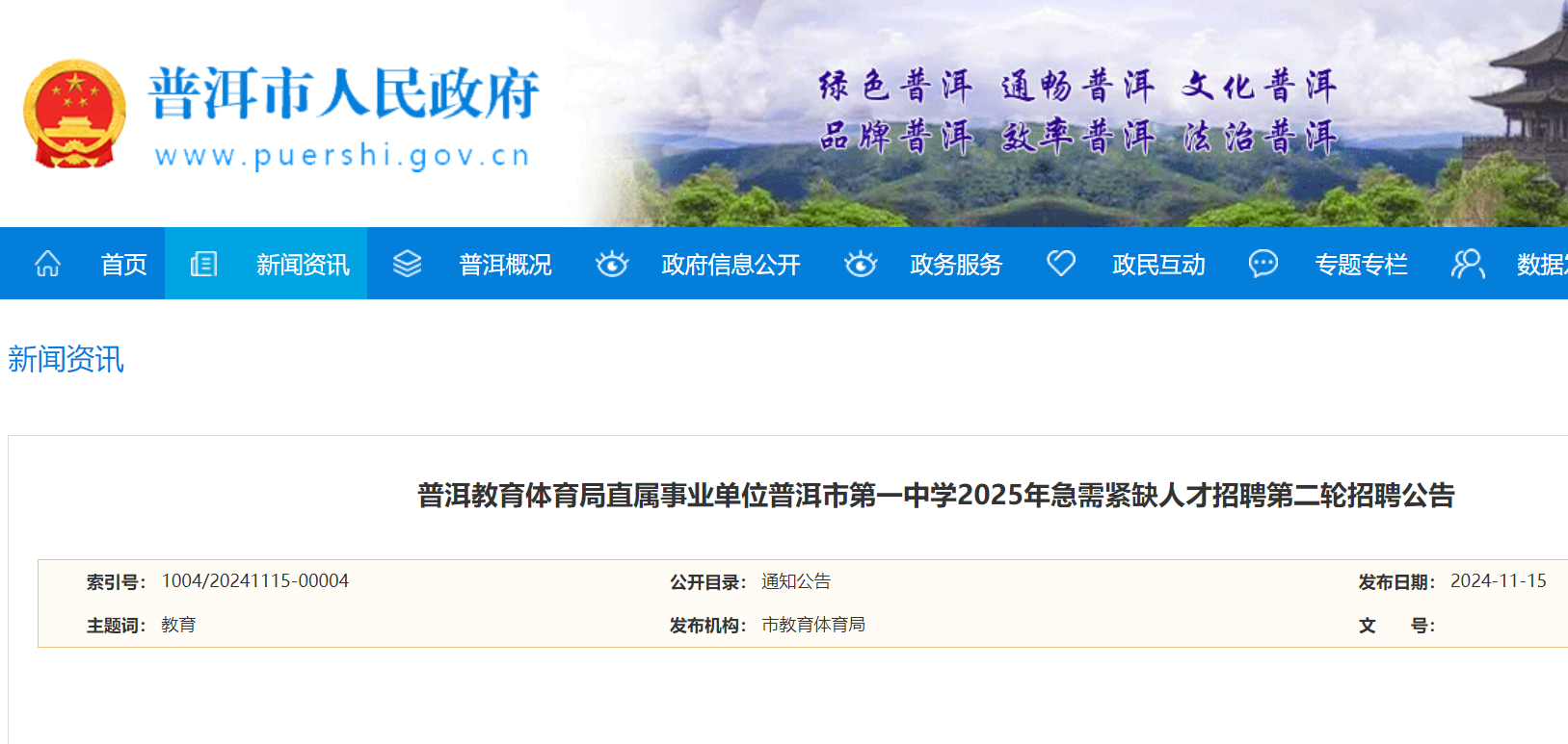 (一)發(fā)布公告:2024年11月15日在普洱市人民政府網(wǎng)http://www.puershi.gov.cn/“通知公告欄”發(fā)布招聘公告。