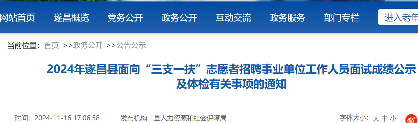 現(xiàn)將2024年遂昌縣面向“三支一扶”志愿者招聘事業(yè)單位工作人員面試成績及入圍體檢名單予以公示(詳見附件1)。根據(jù)面試成績由高到低按崗位計劃數(shù)1:1的比例確定入圍體檢對象。