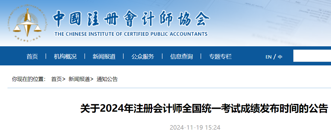 根據(jù)《注冊(cè)會(huì)計(jì)師全國(guó)統(tǒng)一考試辦法》的有關(guān)規(guī)定和2024年注冊(cè)會(huì)計(jì)師全國(guó)統(tǒng)一考試工作安排,2024年注冊(cè)會(huì)計(jì)師全國(guó)統(tǒng)一考試成績(jī)擬于11月22日公布。