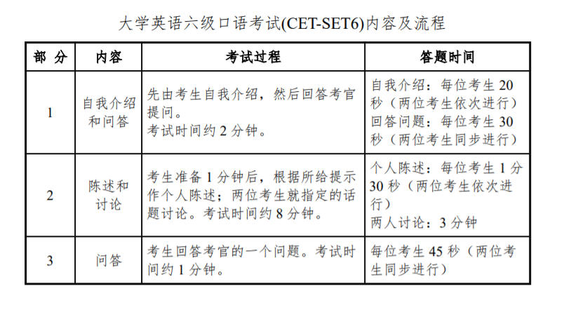 2024年11月安徽英語(yǔ)六級(jí)口語(yǔ)考試內(nèi)容及時(shí)間分配如下表所示: